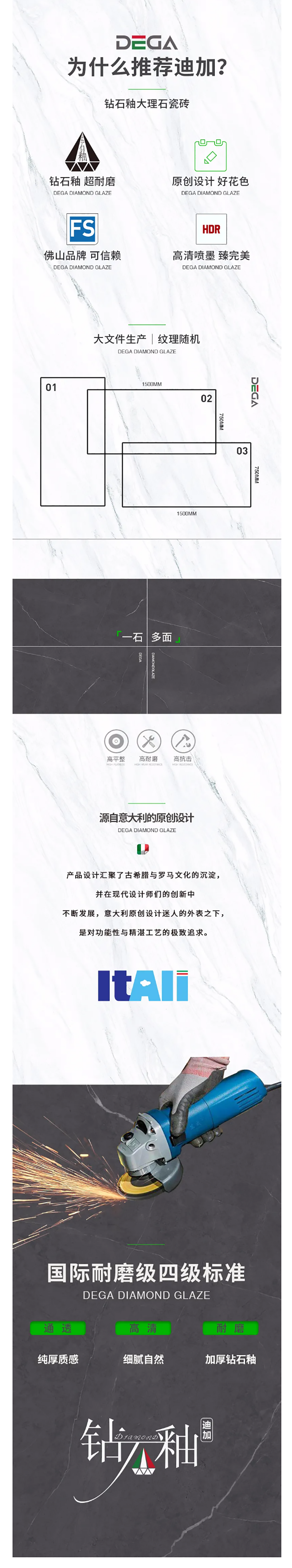 从规格形式的选择、纹理的趣味,到丰富内涵的表现、文化的传承等…… 都是她的每一侧面,在750X1500MM创造的舞台中央,是属于一片瓷砖传奇剧的演出。